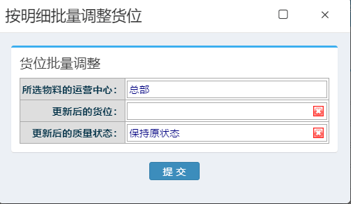 弹出下图页面,点击选择调整后的货位和质量状态,点击提交即可:
