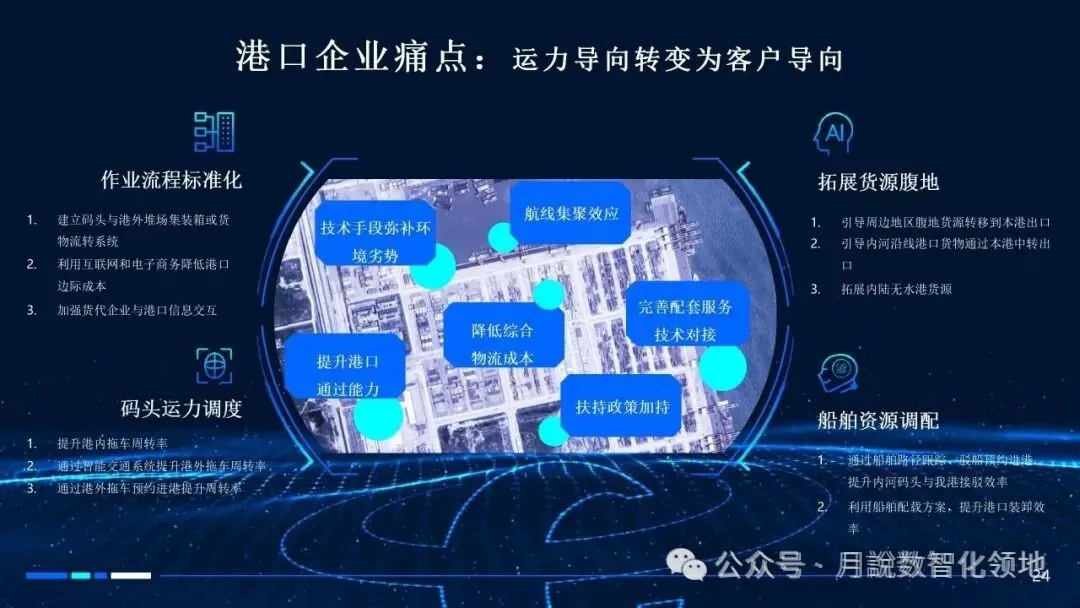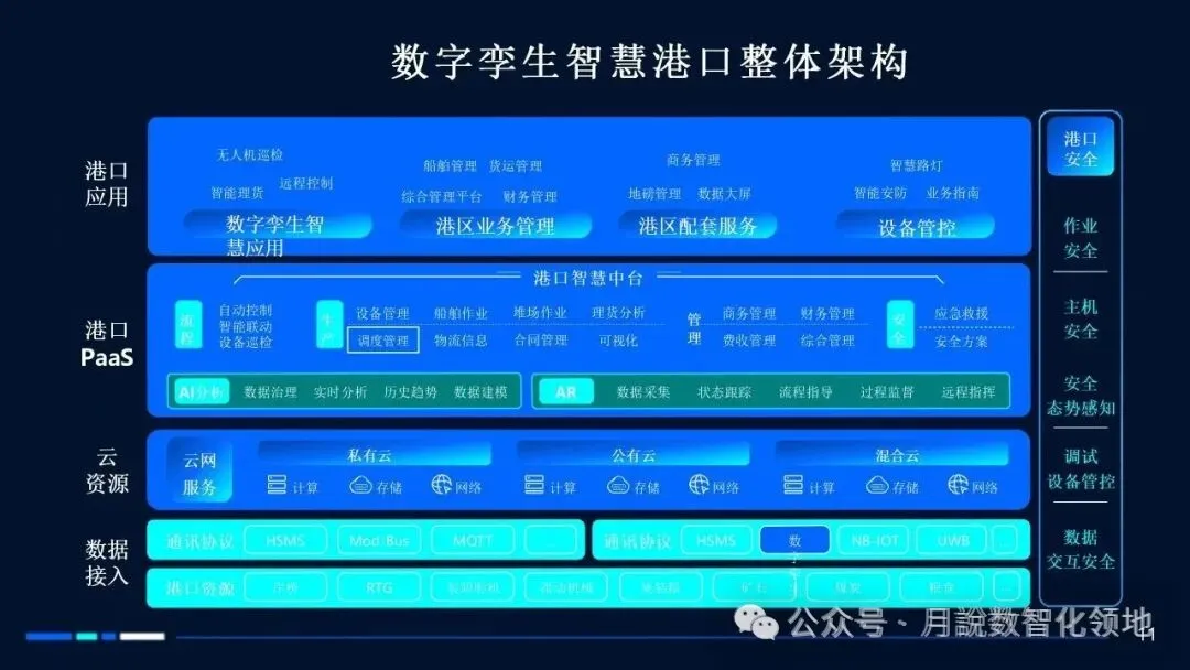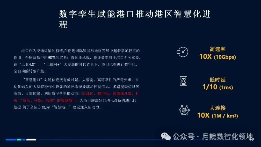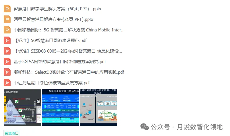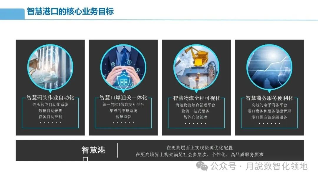 再分享一篇智慧港口数字孪生解决方案(60页 PPT)值得参考借鉴~【月说· 数智领地】还整理了一套《智慧港口规划指南》,具体如下: