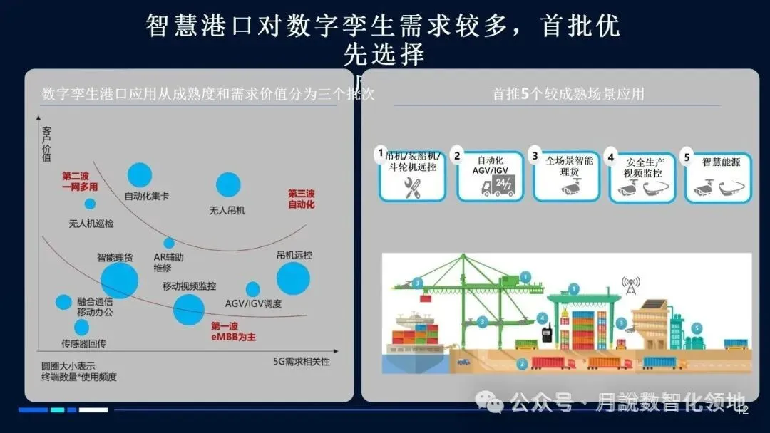 从技术支撑来看,新一代信息技术的成熟应用为智慧港口提供了可能。5G的低时延、高带宽特性保障远程操控与高清数据传输,人工智能与大数据实现作业流程优化与风险预判,数字孪生技术可构建虚拟港口镜像,实现全流程模拟与精准管控。技术与业务的深度融合,推动港口从“数字化”向“智慧化”跨越,催生全新运营模式与服务形态。