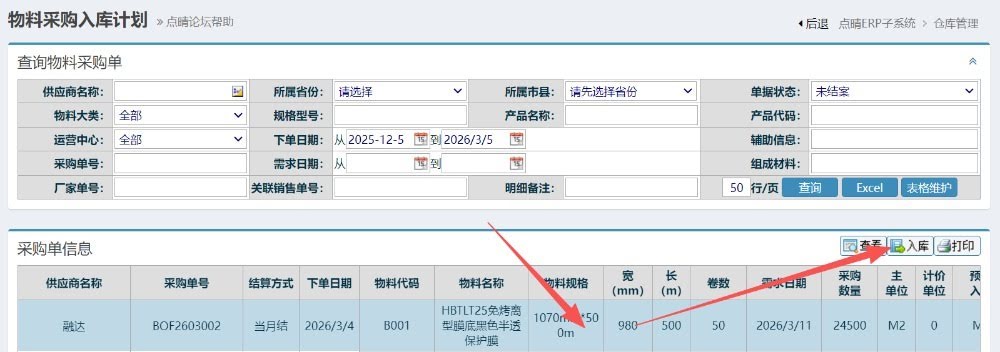 操作步骤,仓库管理-物料入库管理-采购入库管理-采购入库计划