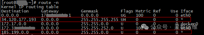 1. 屏蔽单个 IP每一条命令对应屏蔽一个单独的 IP 地址,这些都是用户整理出的、无法正常访问的 GitHub 相关 IP。 2. 批量屏蔽整个网段最后这条命令比较特殊,它是把整个 这个网段里的大部分 IP 都是 GitHub 的服务器 IP,很多都存在访问问题,所以可以一次性屏蔽整个网段,不用一个个手动添加。 二、怎么看有没有生效?设置完之后,你可以 ping 一下被屏蔽的 IP 来测试效果。 比如你屏蔽了 这个报错不是说你的网络坏了,而是说明屏蔽生效了 —— 你的服务器根本没把访问请求发出去,直接就把它丢进"黑洞"了,所以会直接提示无法连接。 查看路由表,可以看到配置了2条黑洞路由: