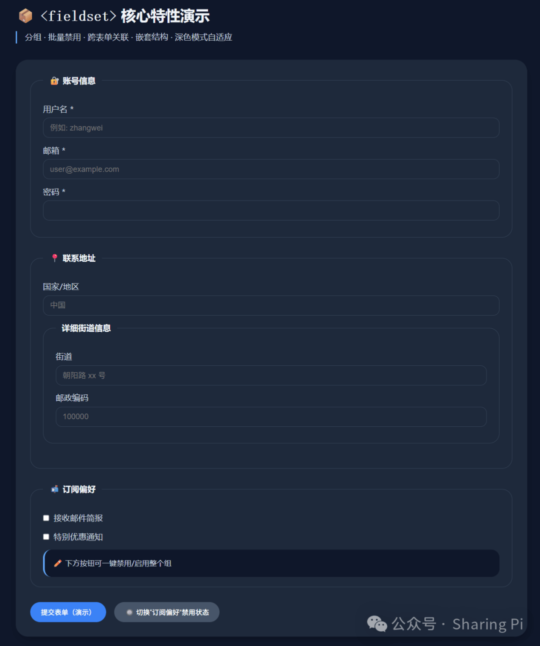 <fieldset> 虽小,却是现代 Web 表单开发中不可忽视的利器。通过本文的学习,你应该已经掌握了: