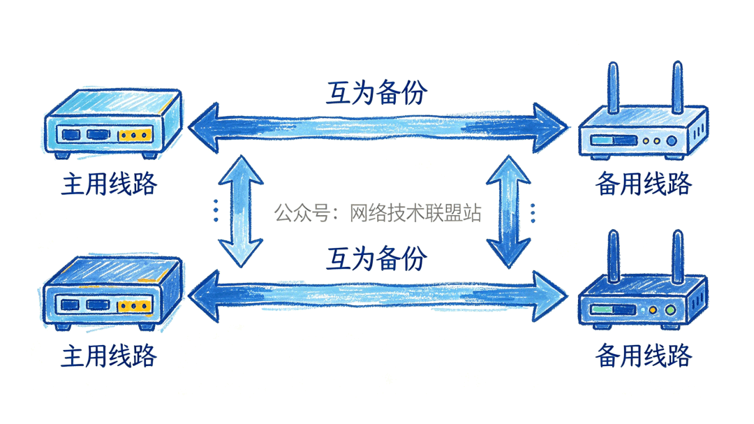 为了保证这种高可靠性,很多核心专线甚至会拉“双路”。也就是从两个不同的机房、走两条不同的物理路径拉两根线进来。万一修路挖断了一根,另一根能秒速无感切换。