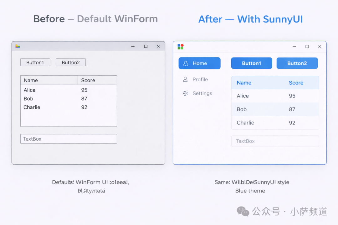 很多人一听到WinForm,脑子里冒出来的词是:土、过时、企业内部系统专用。这个印象不能说全错。WinForm确实老了,默认的那些控件灰扑扑的圆角按钮、丑到离谱的DataGridView、动不动就糊成一团的DPI问题——做企业管理系统够用,拿来做稍微有点要求的界面,心里总有点不体面。但WinForm有一个巨大的优势被低...