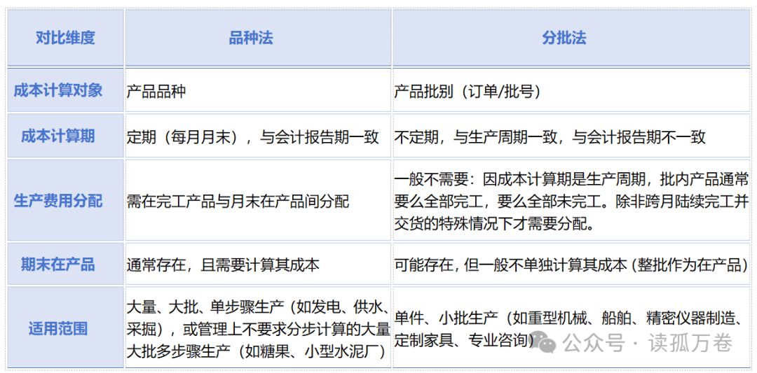 一、品种法VS分批法二、总结何时用品种法?当回答“我们这个月生产的A产品,每件的成本是多少?”时,它关注期间产出。何时用分批法?当回答“我们为某某定制的那艘游艇(#601订单),总成本是多少?每艘成本多少?”时,它关注具体任务。根本的区别在于成本计算对象和成本计算期的不同,这直接导致了是否存在完工产品与在产品分配这一关...