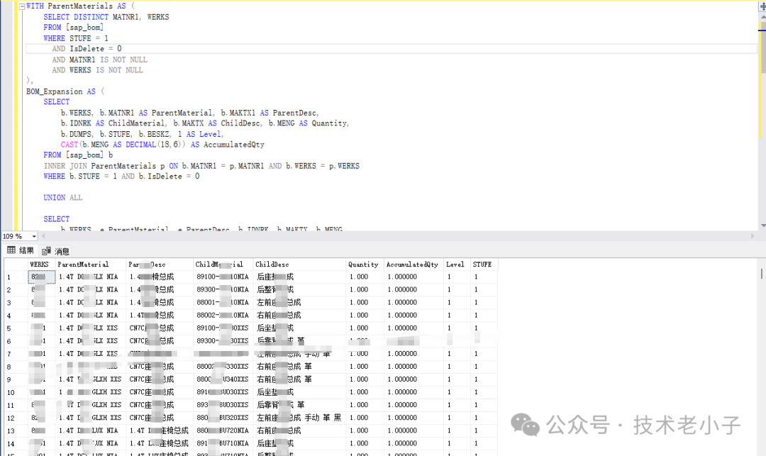 | 在企业级数据处理中,BOM(物料清单)数据的处理一直是让开发者头疼的问题。特别是当客户要求将复杂的多层嵌套BOM结构展开成一层结构时,如何保证数据准确性、性能优化和业务逻辑的正确实现?今天就来分享一个真实项目中的SQLServerBOM数据展开解决方案,这个主要是有同事需要用BOM做回冲,说是要某些叶子级物料,用CTE...   |