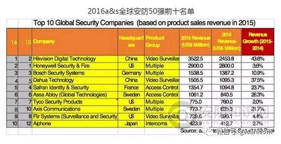 2001年,中国成立了一家叫海康威视的企业,仅仅6年后的2007年,这家中国企业就进入了a&s评选的全球安防50强。记住2007年,海康威视才刚刚进入世界前50,那么到八年后的2015年,海康进步到什么水平了?