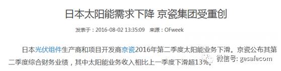 而日本光伏的前两名,夏普太阳能,在2016年3月结束的财政年度,亏损184亿日元,亏损超过10亿人民币。而日本京瓷太阳能2016年第二季度收入比上一季度下降13%。