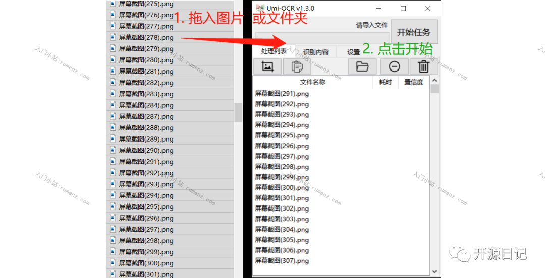 将图片或文件夹拖进软件,批量转换文字。也可以点击按钮打开浏览窗口导入。