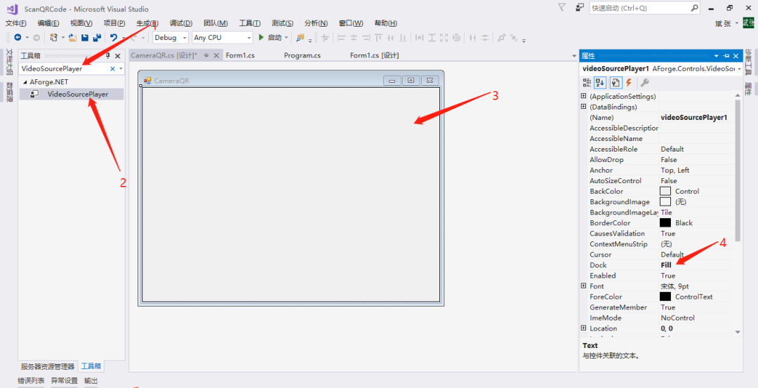 将VideoSourcePlayer添加到窗体中,Fill显示: