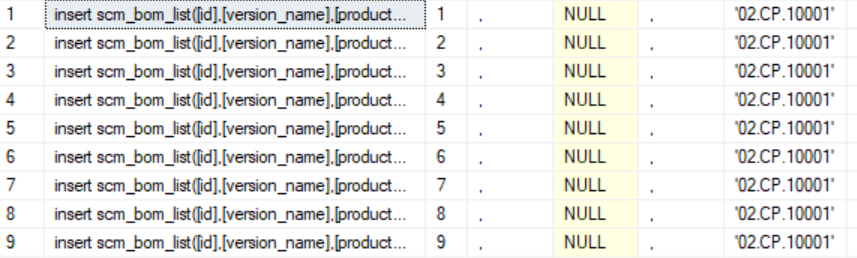 exec Proc_Generateinsert @tablename='scm_bom_list',@filter='',@Order=''