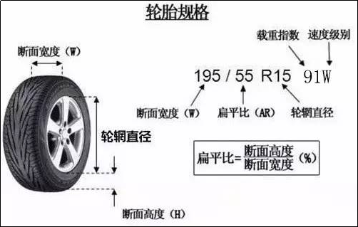 注意了,是轮胎与地面接触的胎面宽度,这时需要你把断面宽度和胎冠宽度区分一下了。扁平比是断面高度和断面宽度的比值。简单概括就是,数值越小,胎面越薄,对路面的反馈越强,但是舒适性降低;数值越大,胎面越厚,路感越差,但是舒适性越好,转弯的侧向抵抗力弱。载重系数:载重系数代表着轮胎最大能承受的重量,小编在唠叨一句,安全行驶不要超载。例如上图中轮胎载重系统91,对照表格,对于的载重系数为600多kg,四个轮子乘以四,我们可以带车子载重是2.4吨左右。速度级别:轮胎主要是由高分子复合材料构成,温度升高会加速橡胶老化。汽车高速行驶时,会使整个轮胎的温度升高,从而导致胎面磨损加剧,轮胎都有其设计的临界速度,当高速行驶达到这一速度时,轮胎就会出现“驻波”现象,这就是该轮胎的“临界速度”,如果在此条件下继续使用,轮胎则会有发生爆裂的危险。所以安全行驶,不要超速。例如上图速度级别W,对照表格,最高速度为270km/h。