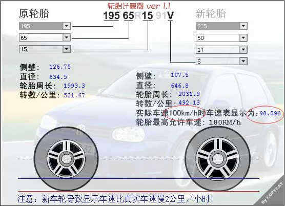 很多网友和车主朋友们对于轮胎Treadwear / Traction / Temperature这三个指数并不是很熟悉,或者了解不深入,以致产生对各厂牌轮胎进行选择时容易出现歧义和误区,为此我们专门带着大家一起来看看三“T”指数究竟有什么意义。认证信息 / 轮胎产地 / 工厂代码 / 生成日期在这里小编在唠叨一句,轮胎达到磨损标准,或者生产日期超过6年轮胎最好别用了,轮胎一旦达到这个时间段,质量骤减!越野轮胎类型:如果你是爱车达人,那么你应该也喜欢越野。那越野胎分几种呢?AT是指适用于全路况的越野胎,MT是指适用于专业越野路面的越野胎,HT是指适用于城市路面的越野胎。很多车主在升级轮胎的同时还会升级轮毂,这里就涉及到了另一个和轮胎宽度数值对应的数值,轮毂J值。轮胎的J值就是轮毂的宽度。轮毂的J值有一个对应的表格,例如上图写着16x61/2J(16x6.5J),对照表格,轮毂的宽度选择范围(195-215),选择205为最佳!不同的轮胎宽度、扁平比、轮毂半径,对应的轮胎直径不同,角速度相同的情况下,轮胎行驶速度和仪表台显示数字就会产生偏差!这时,我们可以借助一个小工具“轮胎计算器”。百度汽车之家轮胎计算器,输入前后轮胎宽度、扁平比、轮毂半径,计算出更换前后的误差值。例如我们把195 65 R15轮胎换成215 55 R17的轮胎,计算得出实际车速100km/h时车速表显示为98.098km/h,在限速路段,你的行驶速度要稍慢些!
