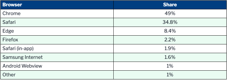 截至目前,该分析页面(https://analytics.usa.gov/)显示过去 90 天的浏览器流量情况如下: