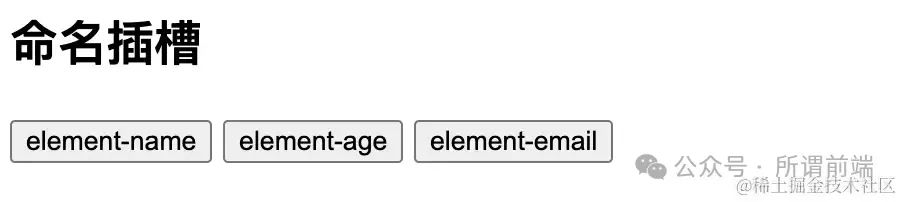 现在,当我们在 HTML 中使用 my-button 时,我们可以向其中插入任何内容,它会替换掉 <slot> 标签: