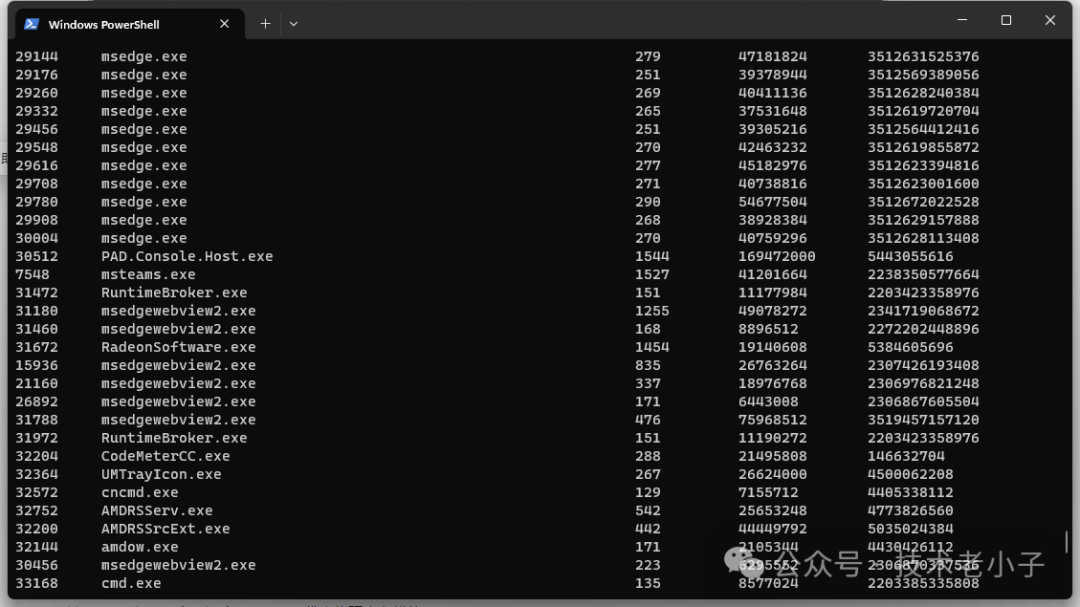 这个命令将列出系统中所有进程的信息,Win32_Process是一个CIM类,代表系统中的进程。