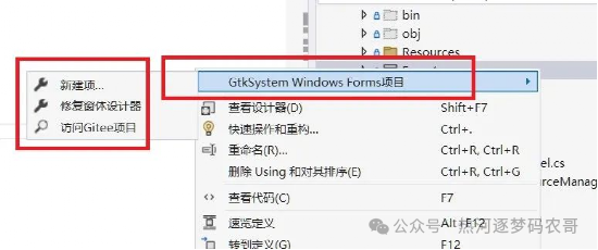 一、效果展示 二、VS2022 创建.net8项目: 通过NuGet安装GdkSharp和GTK# for Windows Forms 插件会安装两个功能: 1、创建新的Form窗体模板和用户控件模板。 2、工程右键菜单。 修改应用程序: 打开.csproj文件: 修改以上两项设置: 修改后显示以下设置: 可以正常编写界面了: 这时候运行会报错,需要安装运行时。 三、下载运行时 1、请访问以下链接下载所需的运行时包:https://github.com/GtkSharp/Dependencies/raw/master/gtk-3.24.zip 2、导航至C:\Users\Administrator\AppData\Local目录,并在此处新建一个名为Gtk/3.23的文件夹。 完整的文件路径为C:\Users\Administrator\AppData\Local\Gtk\3.24.24。 将下载的压缩包解压至3.24文件夹目录内,以完成运行时的安装过程。 界面设计: 运行效果: 软件在不同系统中的运行方式: 在Windows环境下,软件可以通过直接编译并发布来运行。在Debug目录中,demo_app.exe文件或demo_app.dll文件均可以直接执行。 而在Linux和macOS系统上,需要通过命令行执行dotnet demo_app.dll来运行软件。 GdkSharp 是 .NET 平台中用于访问 GDK(GIMP Drawing Kit)功能的工具库,常与 GtkSharp 结合使用,支持跨平台 GUI 开发。以下为相关核心信息整理: 一、GdkSharp 的核心作用 图形操作与窗口管理 它提供对底层窗口系统(如 X11、Windows)的访问,支持 Cairo 上下文创建、绘图区域处理等功能。例如,在 C# 中可通过 Gdk.CairoHelper.Create() 方法生成 Cairo 上下文,用于自定义绘图。 跨平台兼容性 它基于 Mono 或 .NET Core 运行时,支持在 Linux、Windows、macOS 等系统上运行。 二、开发环境搭建 依赖组件 Mono 或 .NET Core:提供跨平台运行环境。 GtkSharp:GdkSharp 是 GtkSharp 的组成部分,需通过 NuGet 或包管理器安装。 IDE 支持 推荐使用 MonoDevelop 或 Visual Studio 插件,便于管理 GtkSharp/GdkSharp 项目。 三、基本使用示例 以下是一个使用 GdkSharp 绘制图形的典型代码示例: