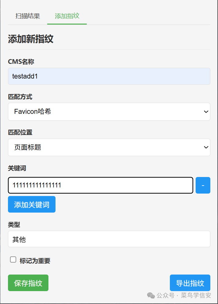 @24师傅给发的一个他写的基于已收集指纹库进行识别网站指纹的浏览器插件,说适合手工打点,能毫秒级出指纹,我现在搞的少,分享给需要的人。