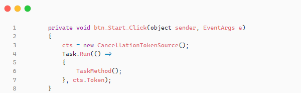 停止线程按钮的事件里,只需要调用cts的Cancel方法即可:
