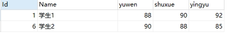 CREATE TABLE `t_student_2`  (  `Id` int NOT NULL AUTO_INCREMENT,  `Name` varchar(50CHARACTER SET utf8mb4 COLLATE utf8mb4_0900_ai_ci NOT NULL,  `yuwen` int NOT NULL DEFAULT 0,  `shuxue` int NOT NULL DEFAULT 0,  `yingyu` int NOT NULL DEFAULT 0,  PRIMARY KEY (`Id`) USING BTREE) ENGINE = InnoDB AUTO_INCREMENT = 6 CHARACTER SET = utf8mb4 COLLATE = utf8mb4_0900_ai_ci ROW_FORMAT = Dynamic;
