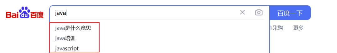 如下图所示,当我们在百度搜索java时,下面的联想数据是通过Ajax请求从后台服务器得到的,在整个过程中,我们的Ajax请求不会导致整个百度页面的重新加载,并且只针对搜索栏这局部模块的数据进行了数据的更新,不会对整个页面的其他地方进行数据的更新,这样就大大提升了页面的加载速度,用户体验高。