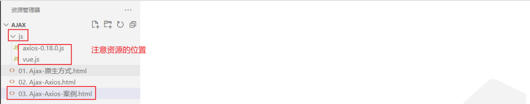 ①首先我们在VSCode中创建ajxa的文件夹,并且创建名为01. Ajax-原生方式.html的文件,提供如下代码,主要是按钮绑定单击事件,我们希望点击按钮,来发送ajax请求