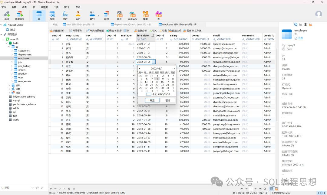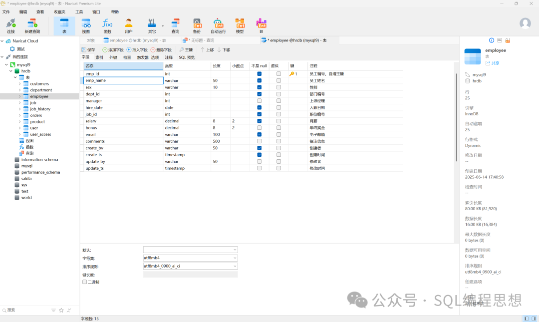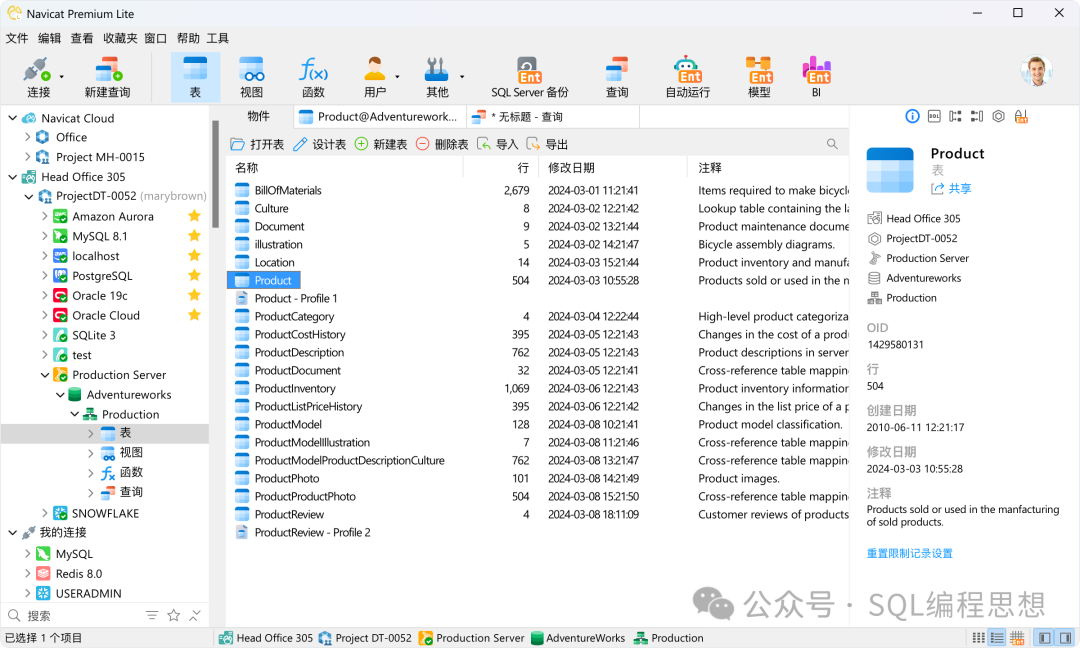 Navicat Premium Lite 提供了统一的对象设计器,可以管理各种数据库对象和权限,详细设计和查看表、视图、过程等的属性、DDL 语句、依赖关系等。