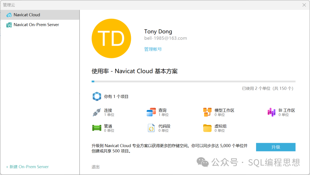 Navicat Premium Lite 允许团队实时共享连接设置、查询、模型和虚拟组信息,支持 Navicat Cloud 公有云以及 Navicat On-Prem Server 私有云解决方案。