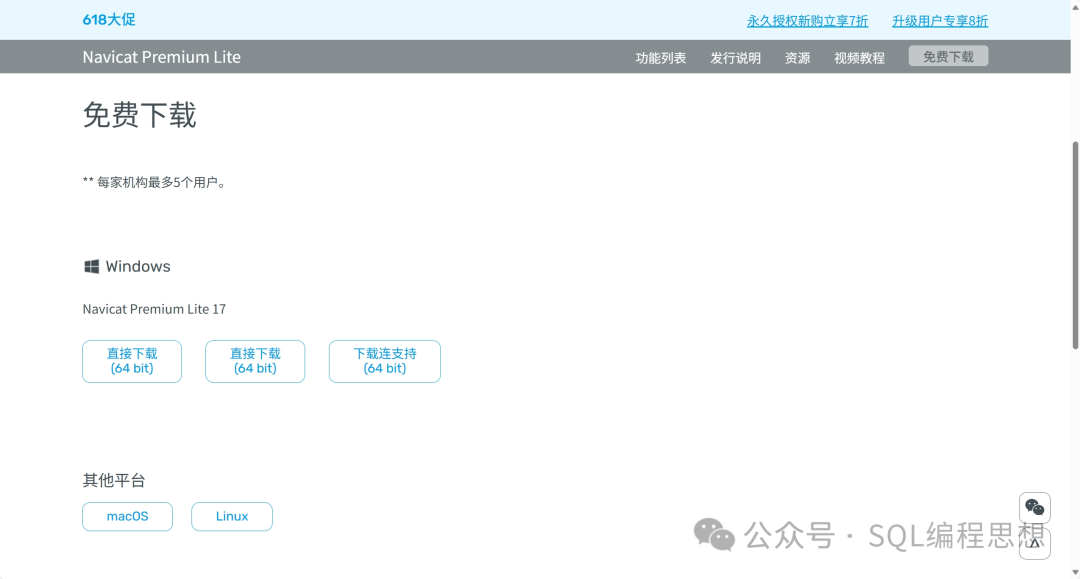 Navicat Premium Lite 支持 Windows、macOS、Linux,官方下载地址如下: