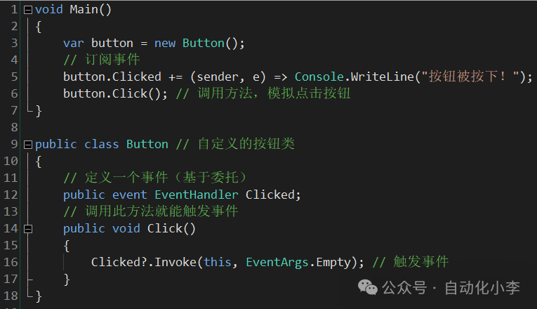 button.Clicked += (sender, e) => Console.WriteLine("按钮被按下!");