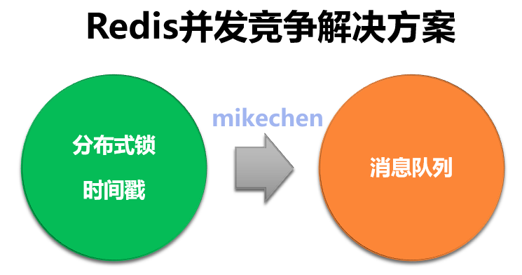 如何解决redis的并发竞争key问题呢?下面给到2个Redis并发竞争的解决方案。 02 — 第一种方案:分布式锁+时间戳1.整体技术方案 这种情况,主要是准备一个分布式锁,大家去抢锁,抢到锁就做set操作。 加锁的目的实际上就是把并行读写改成串行读写的方式,从而来避免资源竞争。 2.Redis分布式锁的实现 主要用到的redis函数是setnx() 用SETNX实现分布式锁 利用SETNX非常简单地实现分布式锁。例如:某客户端要获得一个名字mikechen的锁,客户端使用下面的命令进行获取: SETNX lock.mikechen<current Unix time + lock timeout + 1>