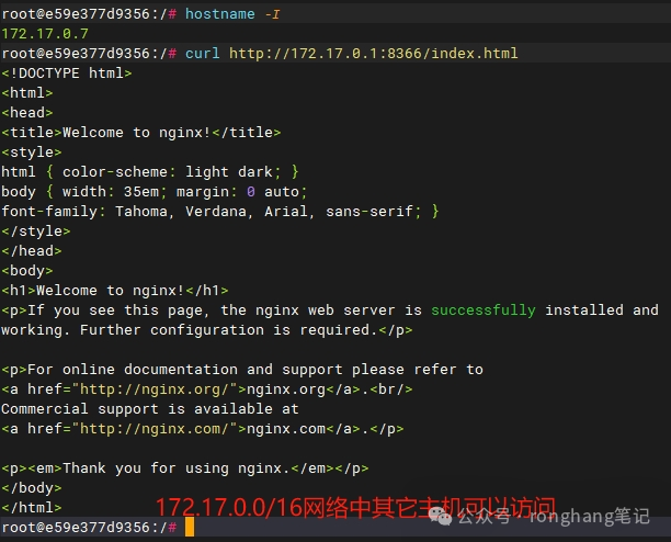 后禁止访问。而172.17.0.7能够访问是因为allow 172.17.0.0/16;规则生效。allowallow 172.17.0.0/16;