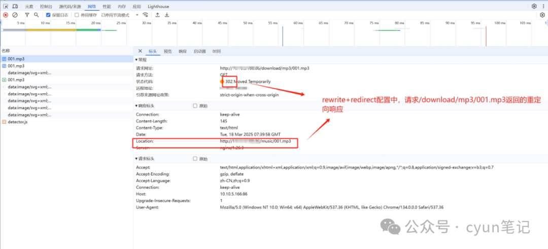 ,响应:302 http://192.168.1.166:86/music/001.mp3
