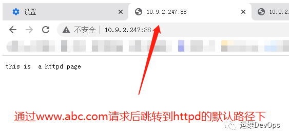 通过浏览器访问www.abc.com,可以看到重定向到httpd页面,如图: