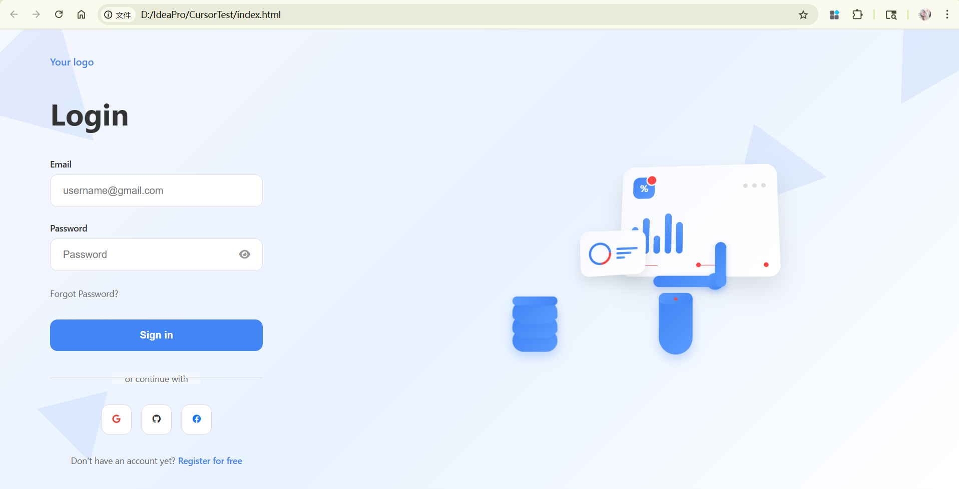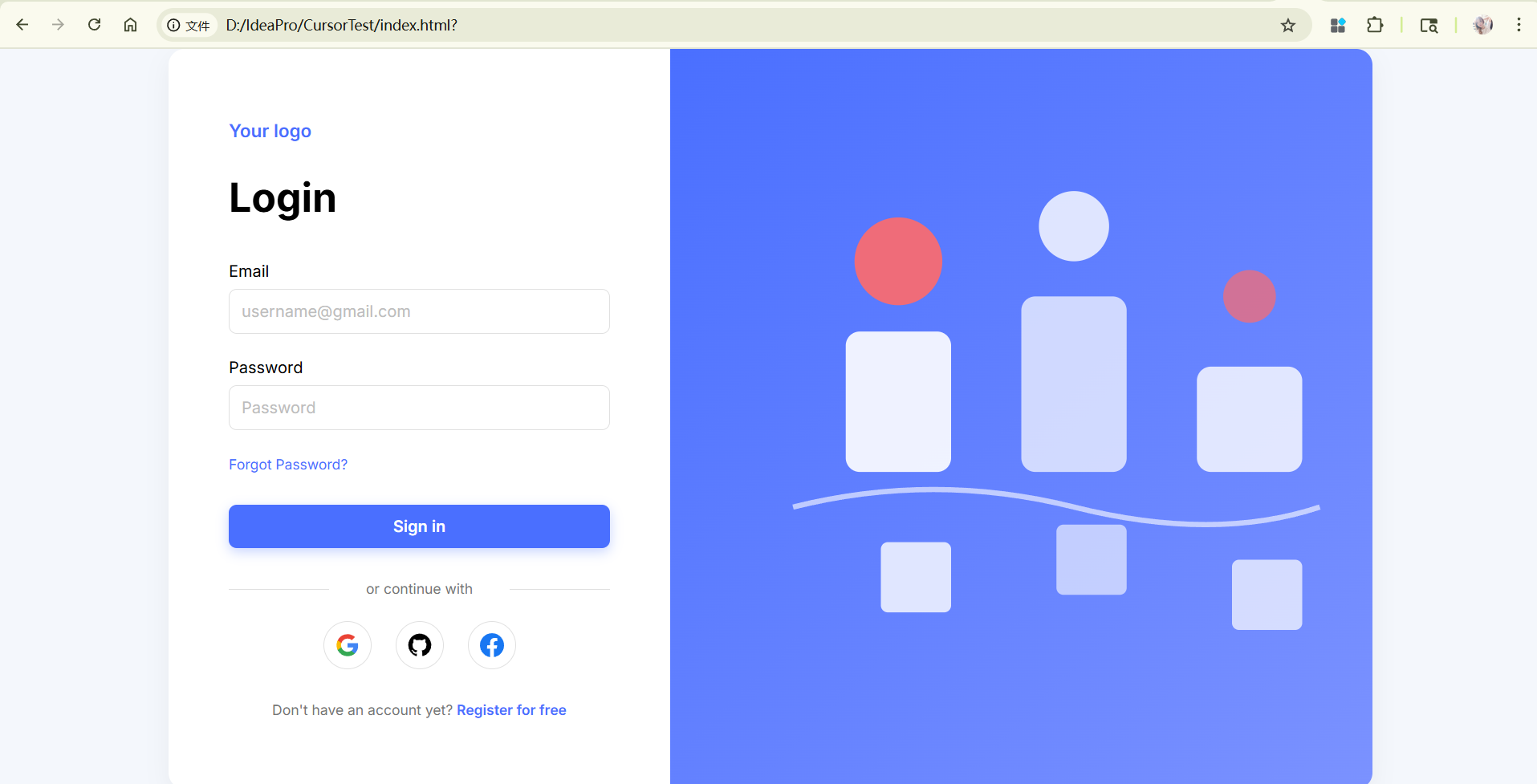 生成效果如下: 对比一下如果直接用 Cursor 根据截图生成代码,不用 JSON 文件。 提示词: