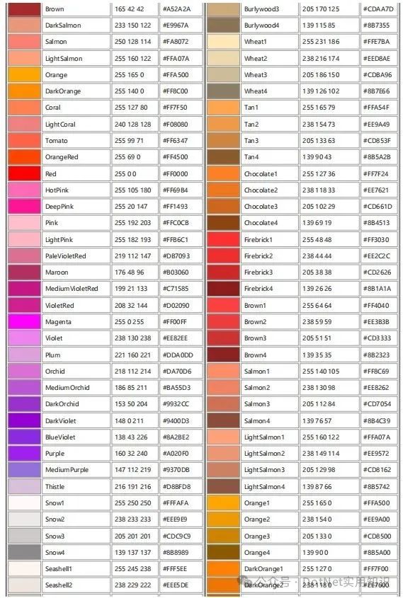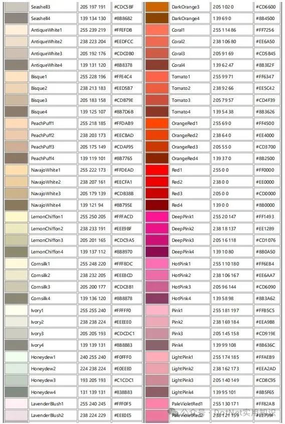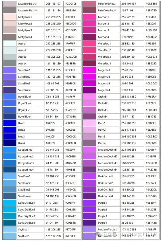 颜色模型CMYK与RGB配色表