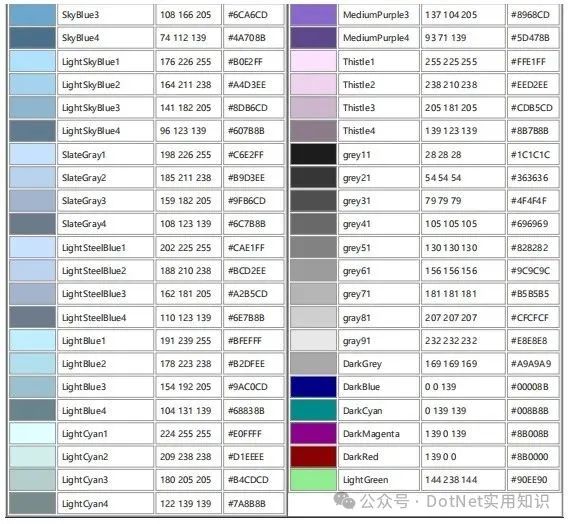 // 带透明度的RGB (ARGB)Color semiTransparentBlue = Color.FromArgb(12800255); // 50%透明蓝色