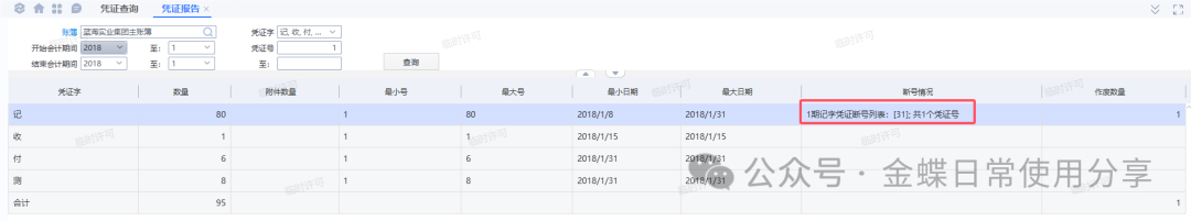 ②一般凭证过账不允许有断号,过不了账则总账无法结账,如一定要设置断号允许过账,可参考方案:凭证过账如何设置允许断号、总账结账流程。