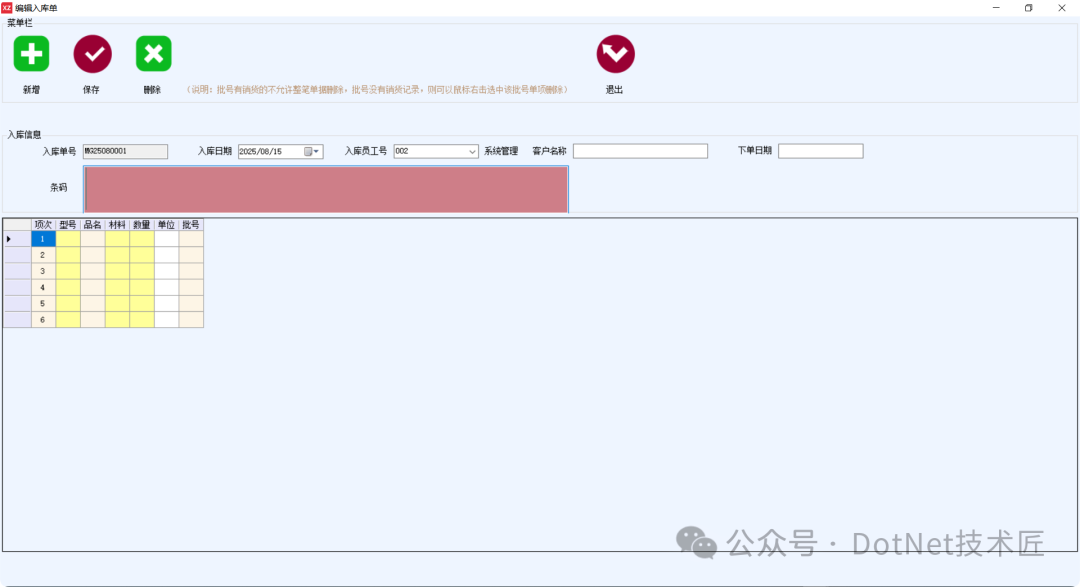 源代码,开发文档地址,关注微信公众号【DotNet技术匠】,在微信公众号中回复库存管理系统获取相应的代码,分享不易,欢迎点赞或转发!!!