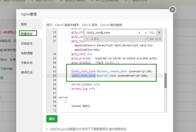 http {    limit_req_zone $binary_remote_addr zone=req_limit:10m rate=20r/s;    server {        location /api/ {          limit_req zone=req_limit burst=50 nodelay;  # 每秒20个请求,突发允许50个        }    }}