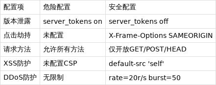 server {    # 只允许业务必需的方法    if ($request_method !~ ^(GET|POST|HEAD)$) {        return 405;  # 非法方法直接拒绝    }}