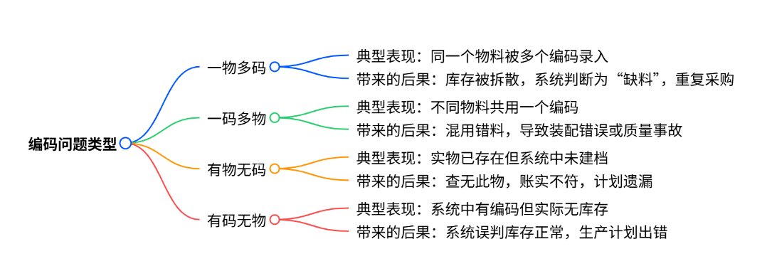 实际企业中,物料编码常见的混乱主要集中在以下四种类型: