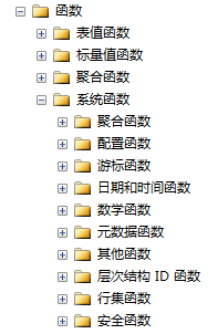 微软SQL Server数据库中包含了很多内置的函数,入下图: