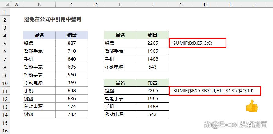 因此,在公式中,使用特定范围(如 B1: B3000)而不是整个列(如 B: B),或者仅包含数据的单元格(如 B5: C100)。