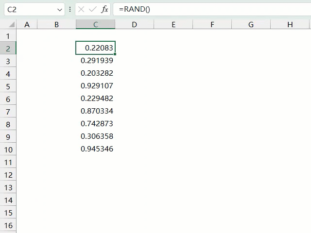 3、如果使用这些函数来生成一次性的结果,例如使用 RAND 函数生成一些随机数,请使用复制 >粘贴值,将结果替换为静态值。