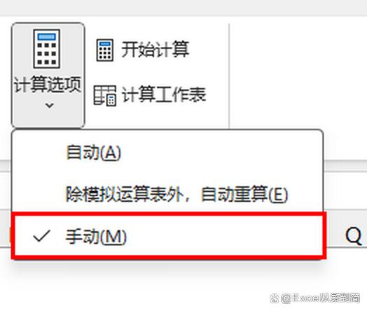 如果不太需要工作表中的公式每次都自动重新计算,则可以将计算选项设置为手动计算(在公式 >计算选项 >选择手动)。
