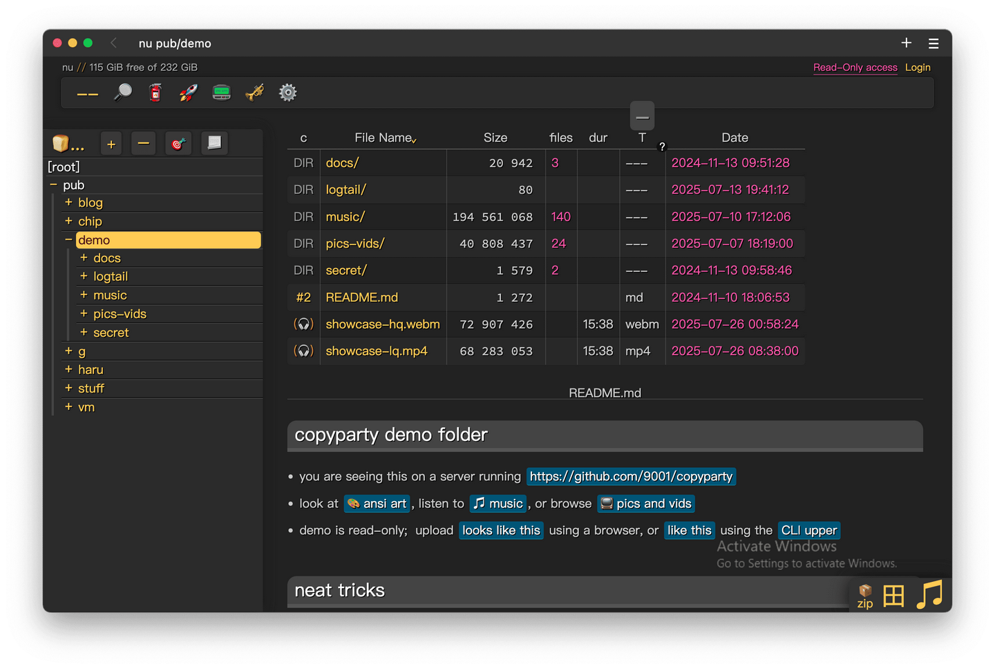 GitHub 地址→github.com/9001/copyparty