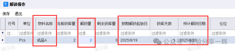 库存锁库:(物料),按数量和日期锁住,不给出库。