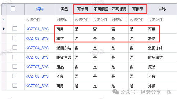 库存状态转换单:(物料)的状态转换,不同的状态有不同的作用。(如:可用状态,可使用,可锁库,冻结状态,不可销售,不可领用)