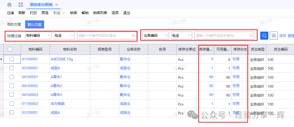 即时库存明细:查看(物料)库存实时数量状态